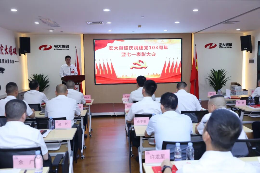 6月27日,宏大爆破舉行慶祝中國共產(chǎn)黨成立103周年暨“七一”表彰大會。公司黨委書記、總經(jīng)理謝守冬,黨委領導班子、各單位黨員代表、本部黨員共50余人參加會議,會議由黨委副書記、常務副總經(jīng)理魯軍紀主持。
